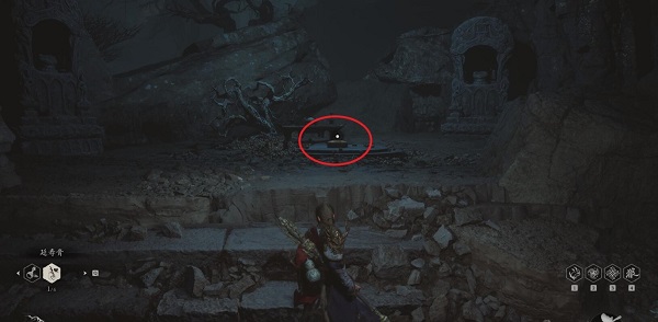 3、进入到裂缝之后,可以找到打坐点的具体位置。