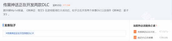 黑神话悟空已经发售了2周多的时间了,各种话题也是频频登上一些热搜或者是话题榜的前几名,贴吧中“传黑神话正在开发两款DLC”也是引起了玩家们的热议,瞬间就登上了贴吧热议榜的第一名,而且热度还在远远不断的上涨。