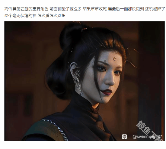 游戏中的一些剧情没有太多回收的伏笔,就有玩家希望游科之后推出的dlc可以把目前游戏中的一些稀缺的剧情给完善起来,就有玩家表示:“四妹高低算第四章的重要角色。前面铺垫了这么多,结果草草收尾,连最后一面都没见到,还机械降了两个毫无伏笔的神,怎么看怎么别扭。”
