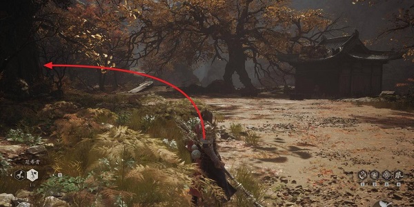 2、上到顶部之后,可以看见一个房子,我们直接路过房子向左前方走。