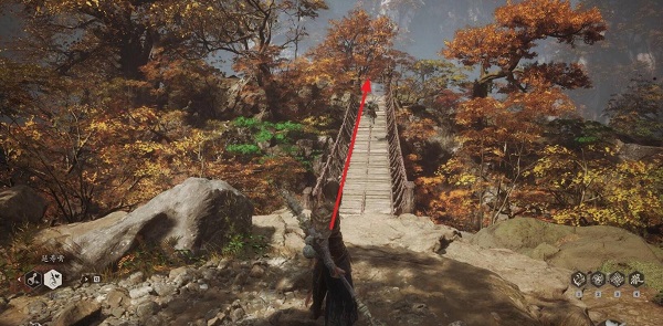 4、上坡之后就可以看见一个吊桥,走过去之后,在桥旁边就可以找到打坐点蒲团。
