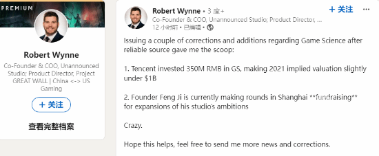 2、冯骥目前正在上海寻找更多的投资方,不断筹集更多的资金来扩大目前游戏科学的工作室规模