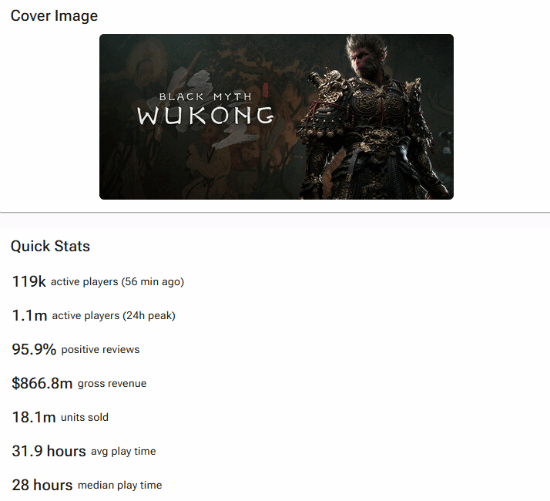 目前,黑神话悟空已经发售了两周多的时间了,这款爆火游戏的玩家数量还在源源不断的增加,不断吸引了更多的玩家用户们前来购买,其销量也是不断的上涨。