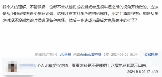 就有吧友在问,下一部作品大家是想玩姜子牙还是钟馗?在这条文章的下方评论区就有玩家表示,想体验钟馗,因为想看游科把十八层地狱展示出来,又有玩家表示可以接着游戏中出现过的角色制作续集,同时还能延续黑神话的热度,何乐而不为呢。
