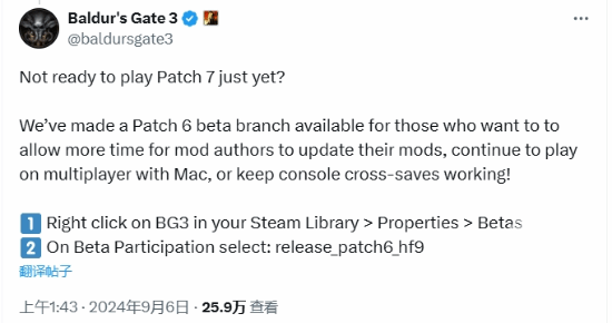 博德之门3就在最近发布了7号补丁的更新,不过很多玩家都暂时还没有准备好7号补丁的更新,所以这一次拉瑞安工作室也为玩家们准备了6号补丁的回滚功能,这也为很多玩家带来非常大的便利性。