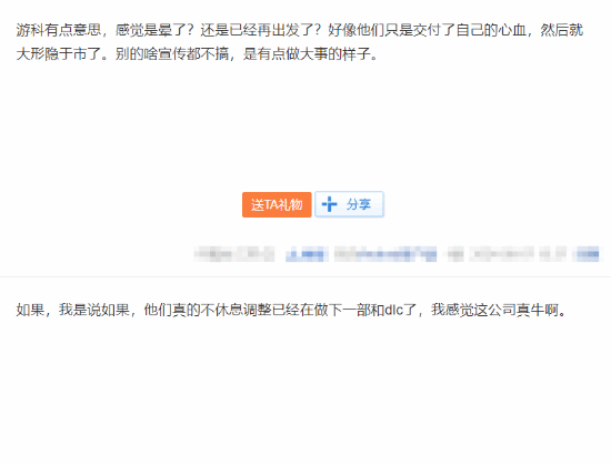 这名玩家表示不知道是因为在准备新的东西还什么,除了交付自己的心血以后就大隐于市了,好像有点像做大事的样子,不知道是休息调整还是正在制作dlc还是下一步的作品,玩家们可以期待一下。