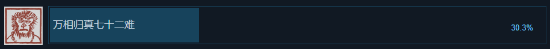 截止目前steam平台中的黑神话悟空的统计数据显示,目前已经有30.3%的玩家已经完成了通关的-万相归真七十二难的成就,也就是说在steam购买黑猴的玩家已经有3成的玩家已经通过了最终boss并完成了通关。