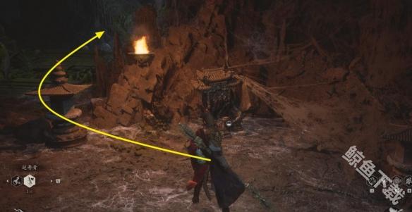 3、这时候你会看到一个类似岩壁山洞的地方,往这个里面走