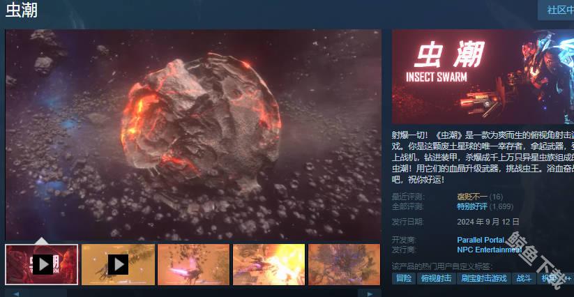 经过长时间的测试,虫潮慕强已经正式发售了,玩家们可以随时体验前所未有的虫群战斗,在这里你可以进行刺激爽快的boss对决,玩家还可以体验十分 爽快的俯视角的射击体验,在这里不断升级你的武器,更好的挑战最强大的虫王。