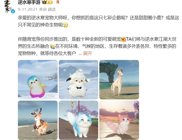 本次逆水寒手游推出了数十种宠物,它们分布在不同的气候,温度等等的地区。玩家可以自行参与相关玩法,据说还能使用宠物进行挣铜币。