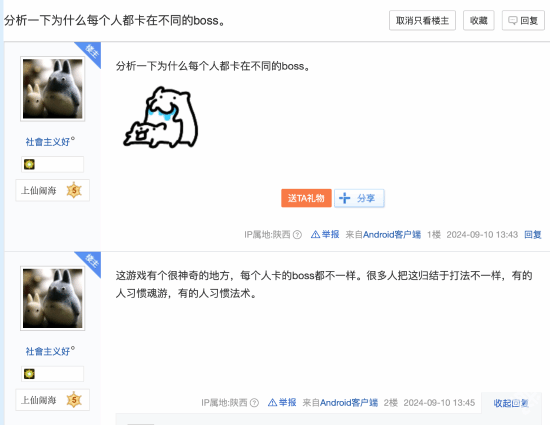 下方有其他玩家评论道:“有好几个boss怎么打都打不死,休息几个小时后立马就能打过去了,刚开局打大圣四个阶段都是一遍通过的,打完了打杨戬也花费了几个小时,然后大圣就再也过不去了,真心感觉比环和魂容易累很多”。