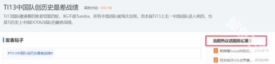 在最近举行的DOTA2Ti13国际邀请赛上,中国俱乐部0:2不敌对手,顺利被淘汰出局。为此这一次的DOTA2Ti13国际邀请赛所有的中国战队全部被灭,也是离开了这一次的比赛。这一次的历史上最差的战绩也是一度登上了热搜,而且在某社交平台上的热议榜,话题热度也是在持续增加。