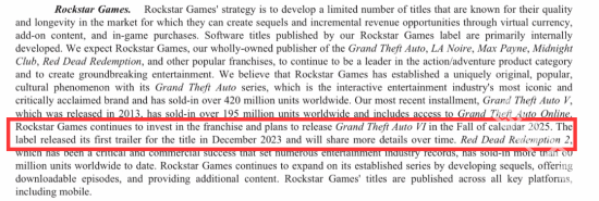 但是在最近的Take-Two发布的年度报告中,官方非常强硬的态度表示了gta6依旧还是原定计划,将于2025年秋季发售,同时也在侧面否定了之前传言的延期这一回事。