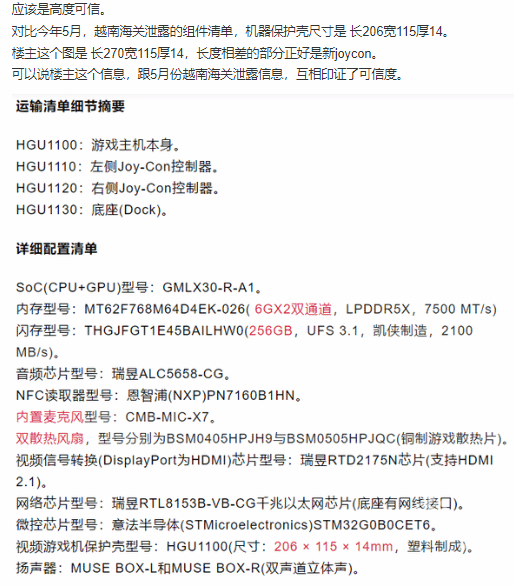 有热心的网友表示爆料图中的Switch 2的掌机尺寸与初代掌机相比似乎打了一些,而且Joy-Con侧面似乎有磁吸的功能,这些小细节与之前有人爆料的Switch 2的细节还是一样的,还有PCB上面印刷的编号去去年泄露的Switch 2上所使用的零件型号数据竟然是完全一致的,那么就说明了爆料人展示的内容还是具有一定的可信度。