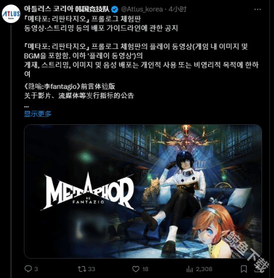 由Atlus打造的新作--暗喻幻想:ReFantazio目前已经正式开启了PS和XBOX平台的demo试玩活动。之前Atlus官方也发布了相关的试玩活动开启的时间表(目前已经删除),PC端平台也在今天正式开启。这是一款女神异闻录3、4、5原版人马打造的游戏,支持简繁中文。