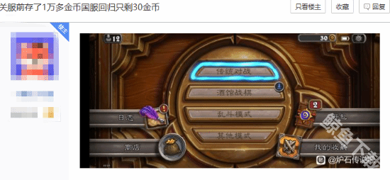 目前炉石传说国服的玩家已经逐渐回归到游戏里了,除了一开始的排队进不去游戏之外,不少的老玩家在进入油管的时候发现自己的金币数量一下子变少了,很多玩家表示都有同样的问题,在关服钱存了不少金币,但是今天一上号发现都没有了。