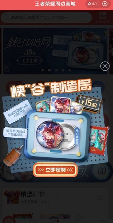 王者荣耀上线diy自定义周边 选取你喜爱的画面吧。王者荣耀在不久前上线了diy自定义周边,从选取图案到工艺,玩家全程可自定义。