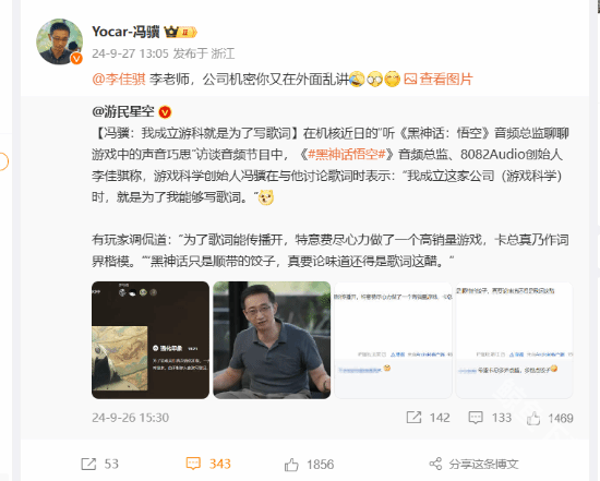 最近游科的制作人冯骥在自己的社交平台上调侃了一下自己的工作室创始人之一的李佳骐老师,并表示李佳骐老师报料的实在太多了,公司机密又在外面到处乱讲。可能希望出黑神话悟空DLC的玩家,这一次可能让玩家们失落了。