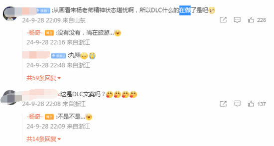 黑神话悟空主美杨奇在自己的个人微博上伐啦一段小作文,当一些热心的玩家们被问到是否在做黑神话悟空的DLC时候,他连忙否认了这个说法,表示道目前尚在旅游。