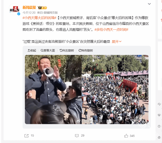 作为热门游戏黑神话:悟空的取景地之一,小西天(也称为千佛庵)在本次国庆假期期间,位于山西省临汾市隰县的这一景区既享受到了游客流量带来的红利,也面临着游客数量激增带来的挑战。景区工作人员表示,由于景区的容纳能力有限,不得不采取排队和限流措施。一些游客因等待时间过长而感到不满。