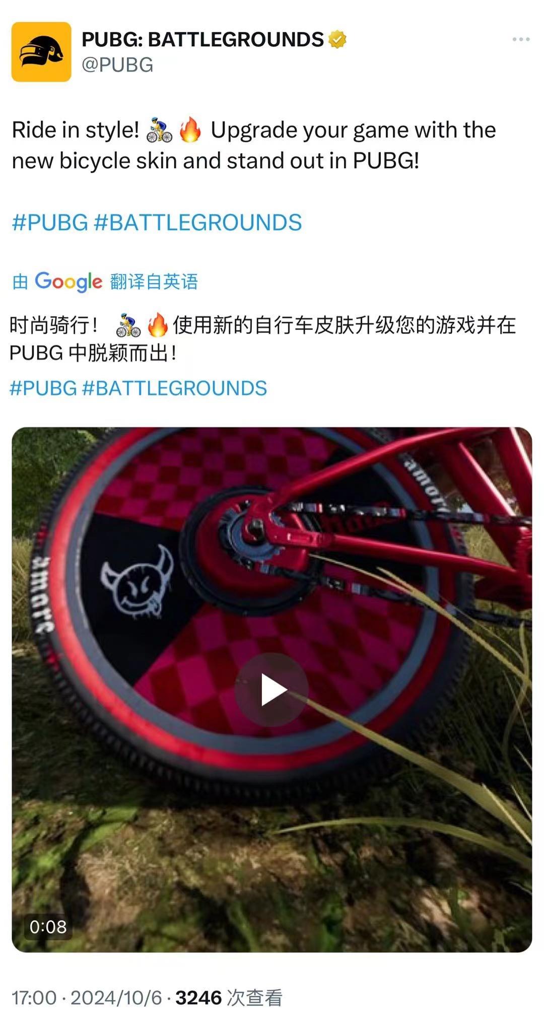 这一次官方发布了全新版本的新内容,这一次带来的载具皮肤是自行车皮肤,让我们一起看一下官方释出的视频截图吧。