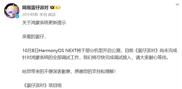 不知蛋仔,腾讯的相关游戏作品(例如王者荣耀等)也在不久前进行鸿蒙系统的适配测试,相信往后鸿蒙系统将会是大势所趋。