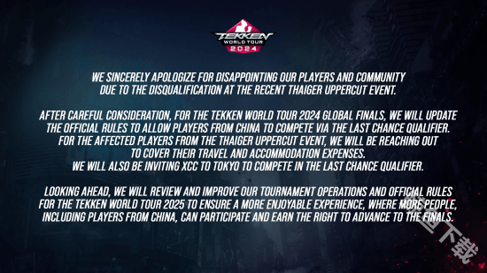 因为之前万代取消中国选手的话题引起了非常大的争议,同时官方也是回应了中国选手XCC失去这一次参赛的资格。官方对于关注这一次发生的事情向广大关注此事件的用户和参赛的中国选手XCC致歉,开放中国玩家参加东京最终的机会资格赛。