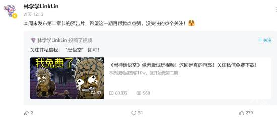 就在上周的国庆节假期,黑神话悟空像素版就已经提供第一章的内容让玩家下载并试玩,游戏中包含了大头和金池两个boss。最近作者表示目前已经在做第二章的内容了,会在近期放出第二章的预告片。