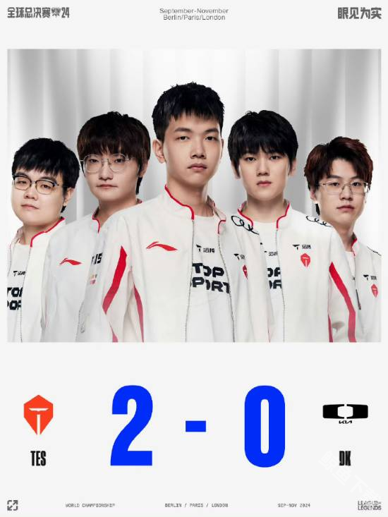 北京时间10月10日英雄联盟2024全球总决赛瑞士轮第四轮的比赛,LPL二号种子TES2-0战胜LCK三号种子DK,顺利晋级8强的席位。这一次TES也是一3胜1负的战绩顺利进入了四分之一的决赛,此前仅仅只输给了LCK二号种子GEN战队。