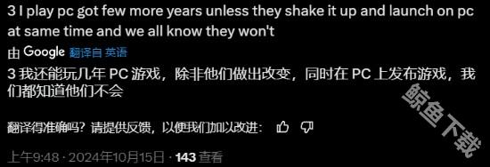 不过也有玩家表示自己的期待值很低:“大概只有3分。我还能玩几年PC游戏,除非他们做出改变,同时在PC上发布《GTA6》,我们都知道他们不会。”