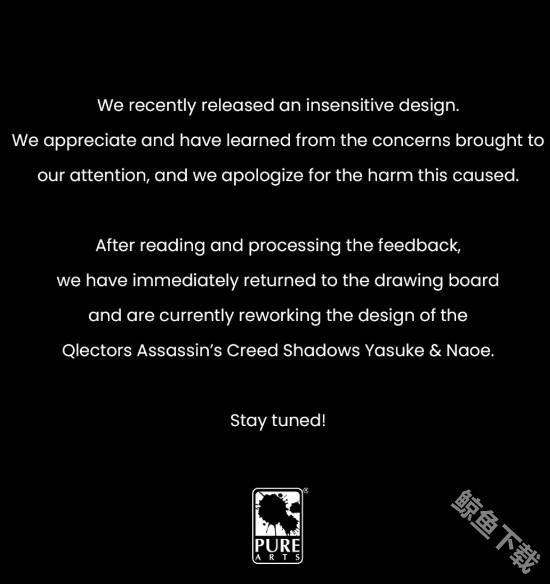 声明中写到:“我们在近期发布了一个敏感的设计。非常感谢大家能向我们提出建议,我们会吸取教训并对这次造成的伤害表示歉意。在阅读和处理反馈意见后,我们目前正在重新设计《刺客信条:影》的这款手办。敬请期待!”