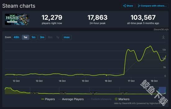目前《哈迪斯2》在Steam上24小时在线峰值达到17863人。虽然相较今年5月7日“抢先体验”上线时的10万多人峰值有不小差距,但对比更新前那段时间的玩家人数,例如9月份游戏的在线人数峰值为2634人,如今在线玩家数涨幅达578.2%。
