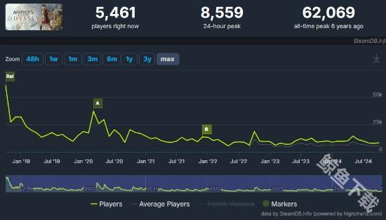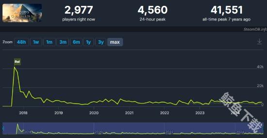 前作《刺客信条:英灵殿》同样是没有首发登陆Steam的作品,当时的玩家数量也比《刺客信条:幻景》要高。