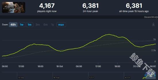 育碧游戏《刺客信条:幻景》已于10月18日登陆Steam,发售至今的两天时间内,游戏的表现并不突出。就算首发刚好定在周末,其峰值玩家数量也远低于《刺客信条》系列的其他作品。根据SteamDB统计,《刺客信条:幻景》同时在线玩家峰值仅为6381人。