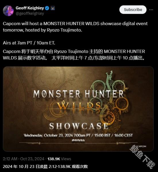 《怪物猎人:荒野》展示会将于北京时间今晚(10月23日)十点播出,制作人辻本良三将亮相,为大家带来该作的最新情报。届时,我们也会第一时间同步进行报道,各位也可关注PlayStation官方油管频道观看直播,敬请期待。