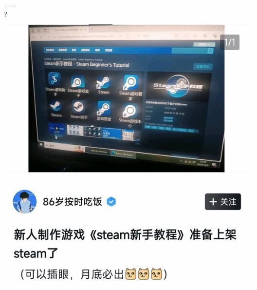 为了引导大众下载正确的Steam,甚至有网友玩梗自制《Steam新手教程》游戏,宣布月底上架Steam。相关话题登上贴吧热搜,有吧友锐评这个游戏堪比“太阳能手电筒”“把钥匙锁进保险箱”的创意。