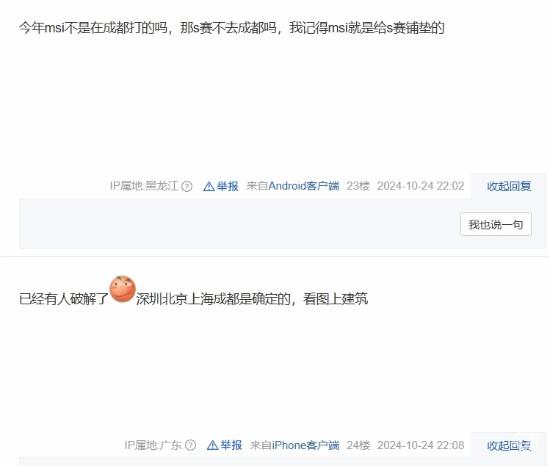 还有人提出,成都在今年的《英雄联盟》季中冠军赛(MSI)中表现抢眼,因此可能再次承办:“今年MSI不是在成都打的吗,那S赛不去成都吗,我记得MSI就是给S赛铺垫的。”