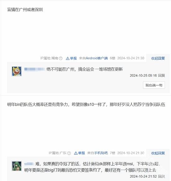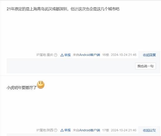 对于具体举办城市的猜测也是讨论焦点,不少人认为可能会在南方城市举办:“盲猜在广州或者深圳”,“广东吧,想线下观赛一次”。有玩家推测,2021年原定的上海、青岛、武汉、成都和深圳这些城市有望再次入选:“21年原定的是上海青岛武汉成都深圳,估计这次也会是这几个城市吧。”