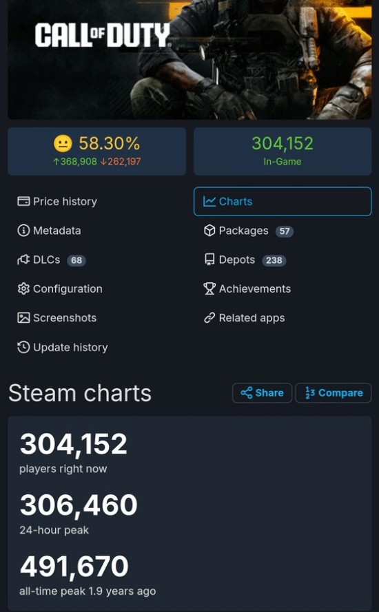 据推主报道,Steam平台《使命召唤21:黑色行动6》周日玩家峰值达到了30.6万人,高于周五的24.9万人。这一数据比《使命召唤20:现代战争3》发售时高出61%,也是2022年12月以来该系列的最高值。