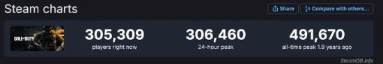 据SteamDB数据,《使命召唤》启动器的24小时在线人数已突破30万人,由于这只是启动器,所以其中一部分可能并非《黑色行动6》玩家。