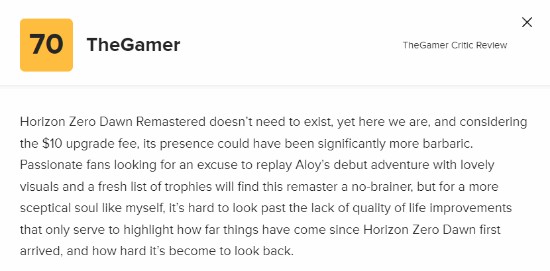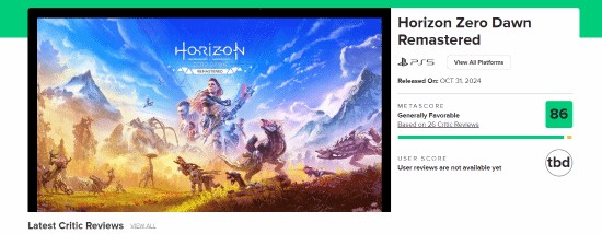 《地平线:零之曙光复刻版》媒体评分解禁。截至发稿前,M站均分为86分。