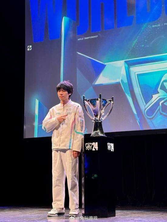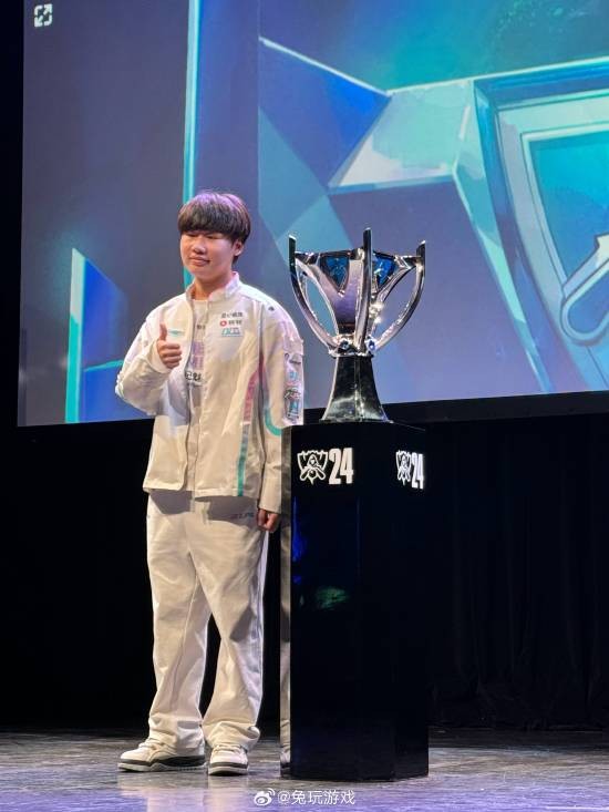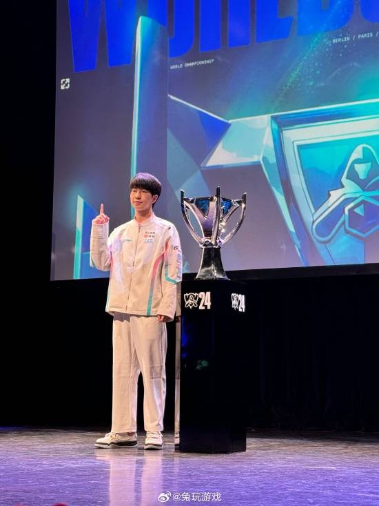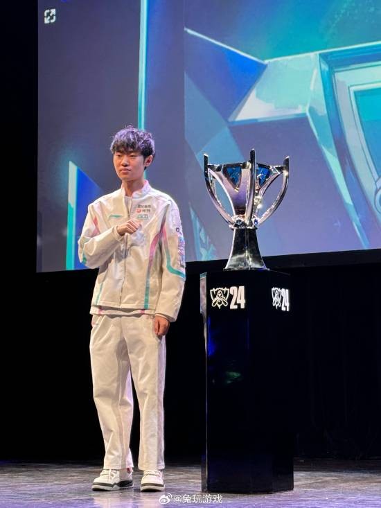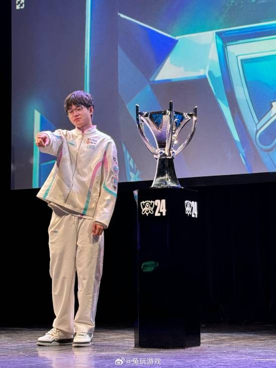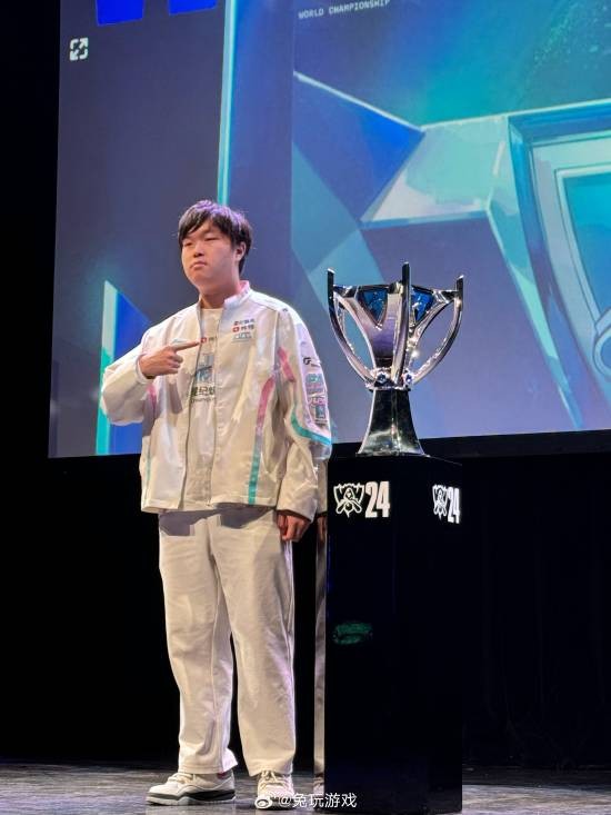 在昨晚的《英雄联盟》S14决赛媒体日发布会上,BLG成员登场与冠军奖杯合影,很默契地指向自己的队标。