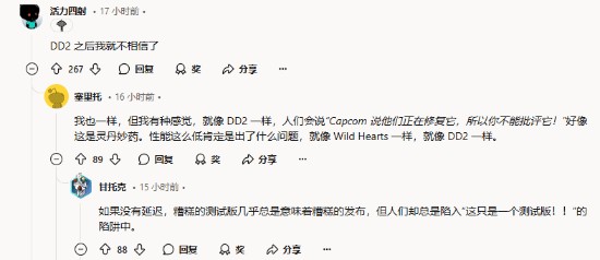 虽然官方已经明确说明正式版优化更佳,但在Reddit上,很多玩家表示悲观,并呼吁卡普空尽快推出新Demo以自证。