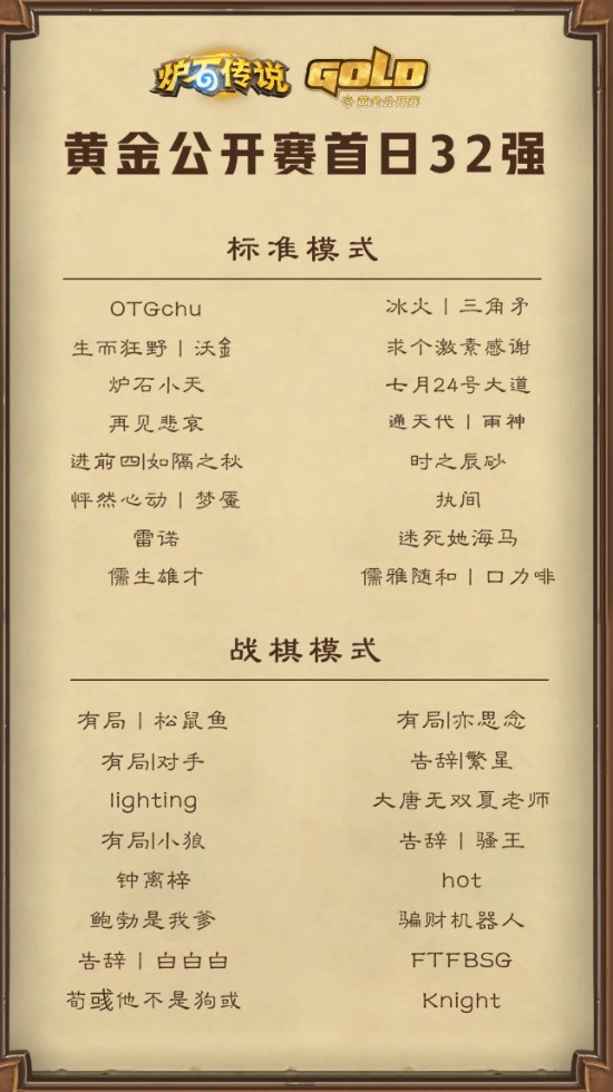 赛事官方列出的11月1日黄金公开赛首日A组32强详细名单: