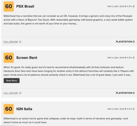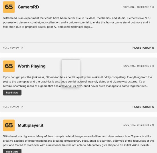 外山圭一郎工作室首部作品《野狗子》全球媒体口碑已解禁,总体评价一般,目前M站均分已降低至60分,21条评价,好评5条,中评14条,差评2条。