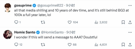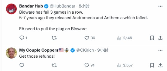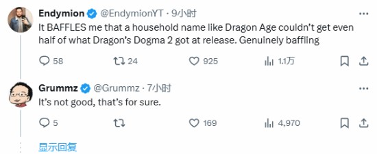 在评论区里,有玩家表示像《龙腾世纪》这样广被玩家们所熟知的大IP的反响竟然连《龙之信条2》的一半都不到,令人匪夷所思。还有玩家锐评道:“生软已经有连续三款游戏失败了。《质量效应:仙女座》加《圣歌》再加上这个,全都失败,EA应该把生软关了。”