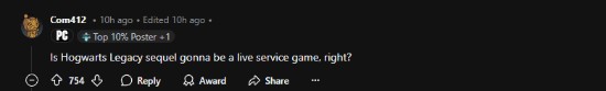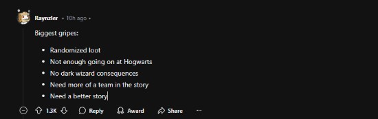 对此,许多玩家对《霍格沃茨之遗2》的改进寄予厚望,指出初代游戏存在的一些不足,包括开放世界稍显空洞、支线任务缺乏吸引力、部分主线剧情略显重复、战利品系统过于随机等问题,希望这些能在续集中得到改进。此外,考虑到《霍格沃茨之遗》的高收益,也有玩家担心华纳可能会在续作中引入服务型内容。