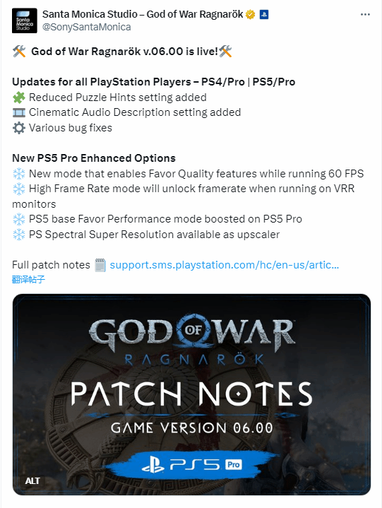 随着PS5 Pro正式发售,《战神:诸神黄昏》新补丁也已正式上线,圣莫尼卡发文介绍了其针对PS5 Pro的性能改进。