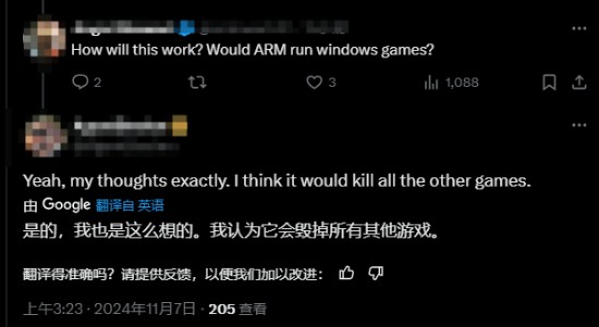 值得一提的是,大多数PC软件和游戏仍不支持Windows上的ARM架构。有不少网友也对此表示担心:“ARM能运行Windows游戏吗?”“我认为它会毁掉所有其他游戏。”