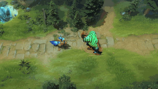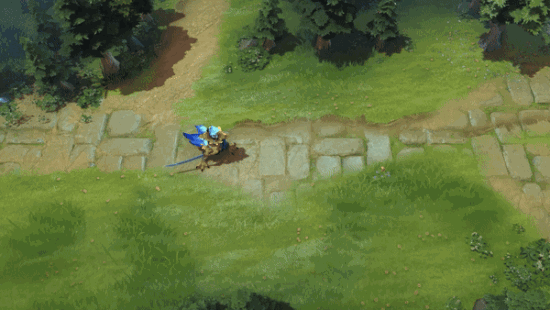 凯向目标单位或者树木发射一枚抓钩并摆荡过去。抓钩碰到目标后,在凯到达前该单位会被减速。如果目标是英雄,凯落地后会发动一次攻击,带有100%加上固定数值的吸血效果。